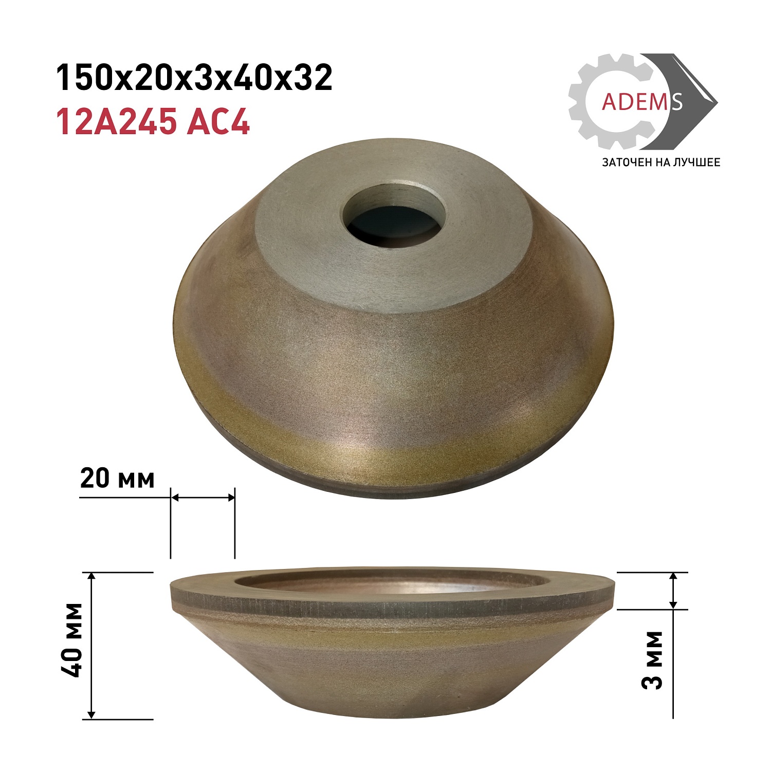 Круг алмазный шлифовальный (чашка) 50/40 150х20х3х40х32 12А245 АС4 - 1 шт.