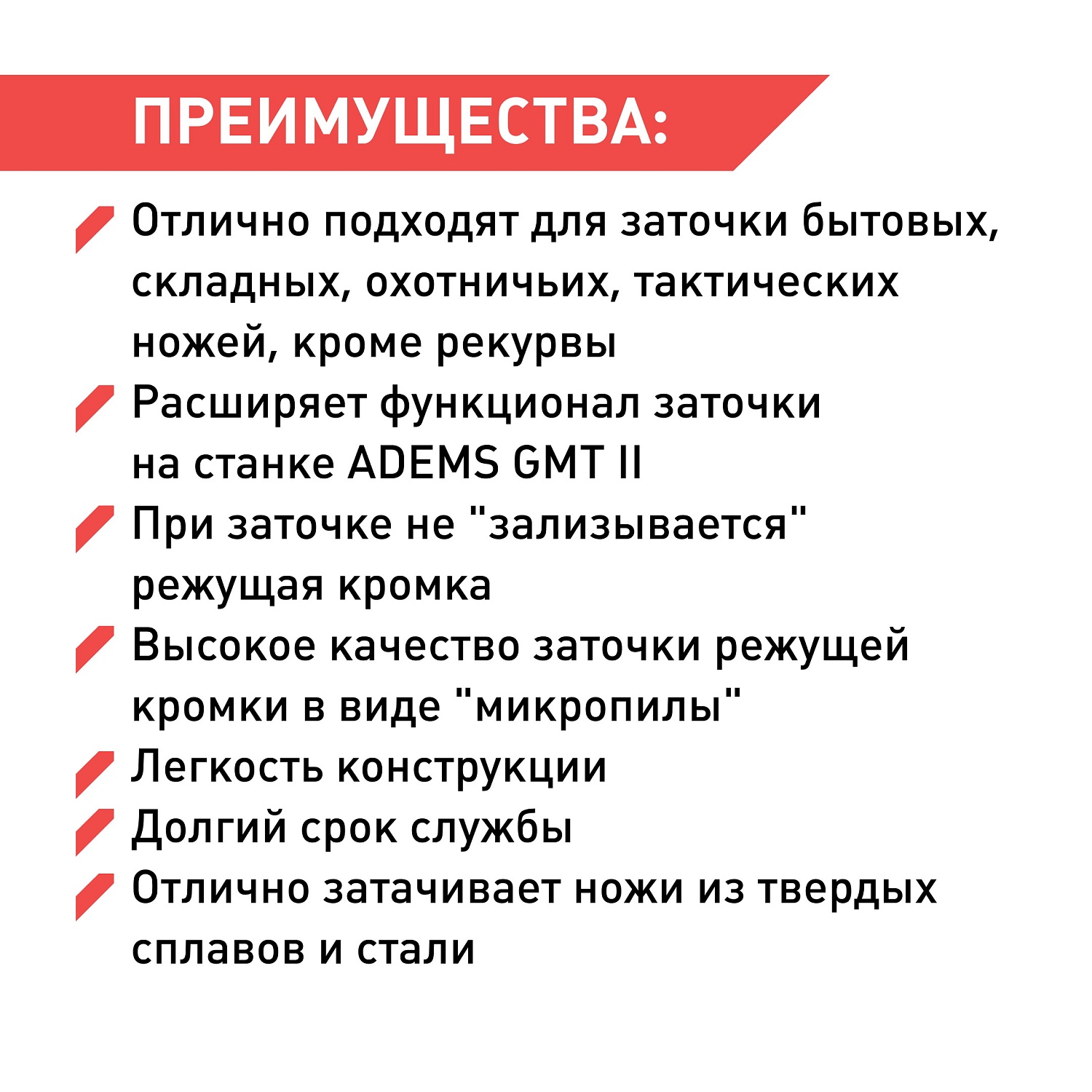 - Расширяет функционал заточки на станке ADEMS GMT II.