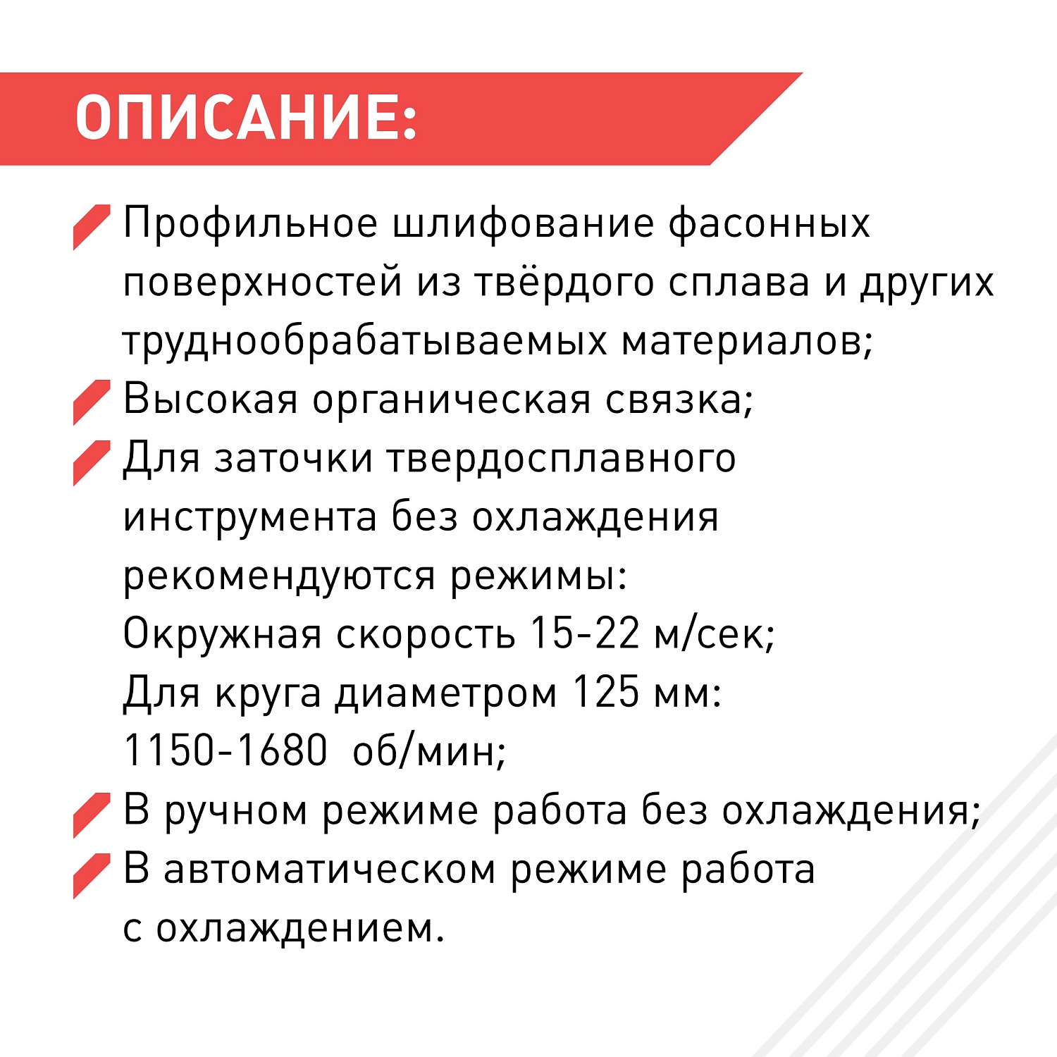 Круг алмазный шлифовальный применяется для заточки и доводки передней и задней поверхности маникюрного, педикюрного, медицинского, ветеринарного и другого инструмента из твердого сплава. А также передней поверхности зубьев разверток, цельных и сборных фрез, червячных фрез, дисковых пил, протяжек и другого инструмента из твердого сплава.