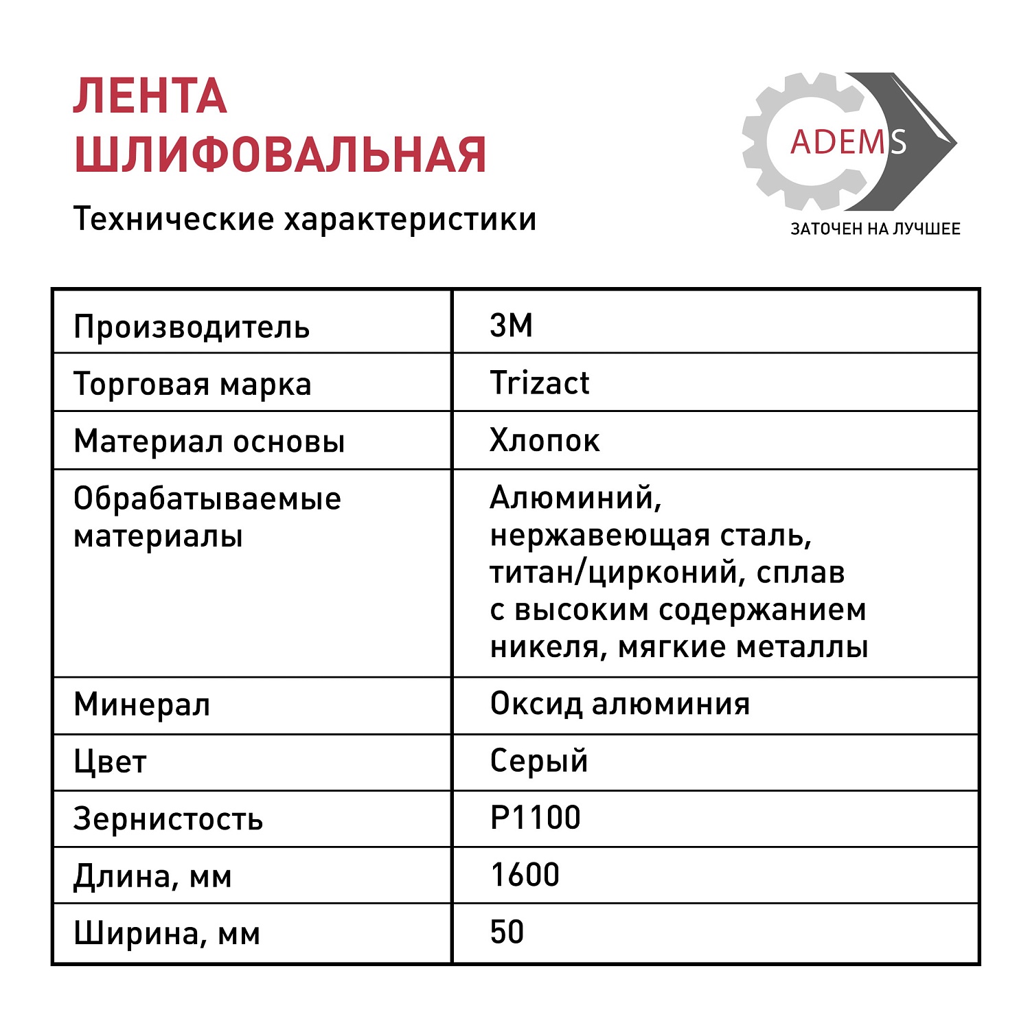 Лента шлифовальная 50х1600 Р1100 (A16) 237AA Trizact 3M - 1 шт