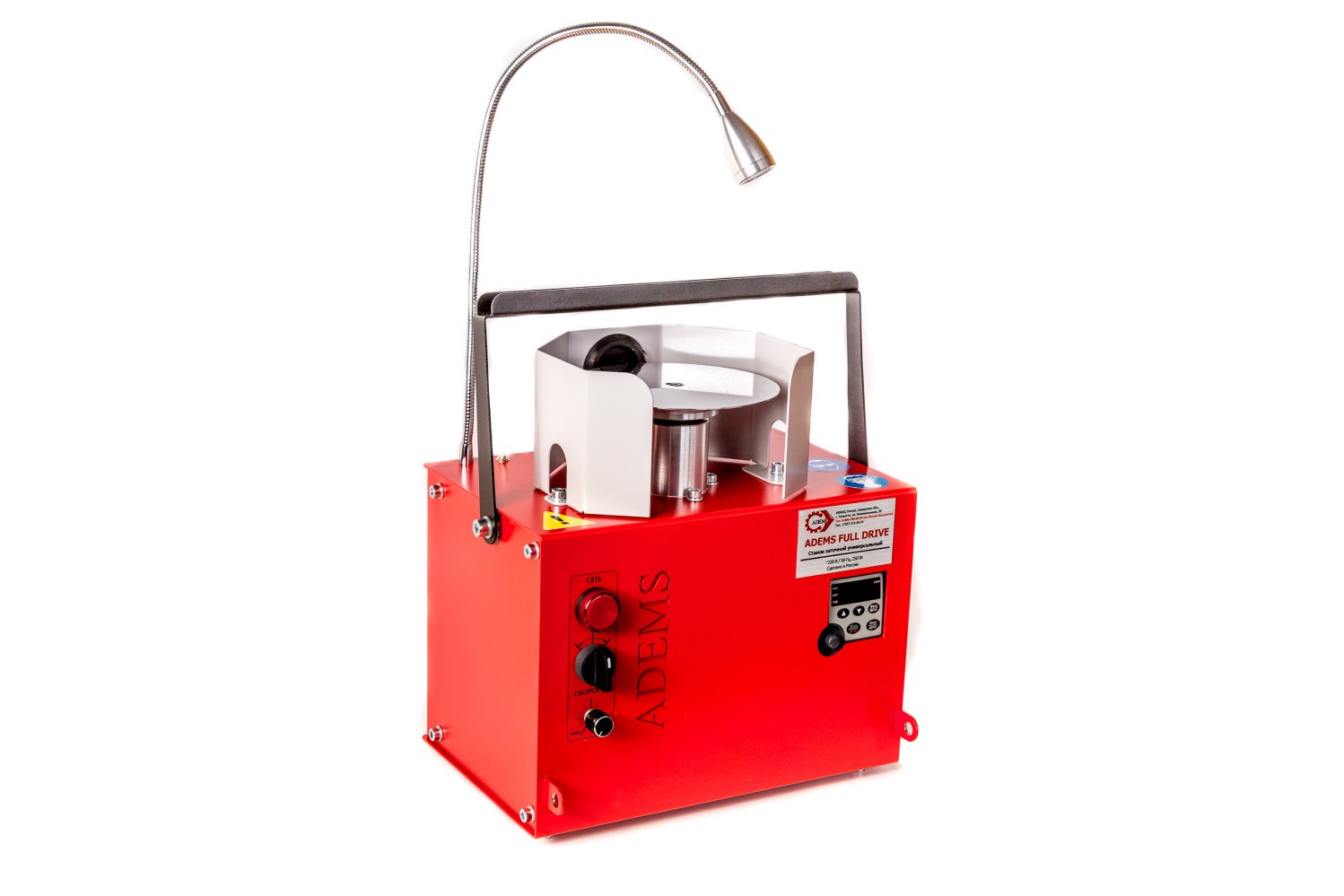 Станок оснащен преобразователем частоты для изменения скорости и направления вращения с электронным тормозом, сохраняя необходимую мощность на малых оборотах, а также высокие обороты для полировки.