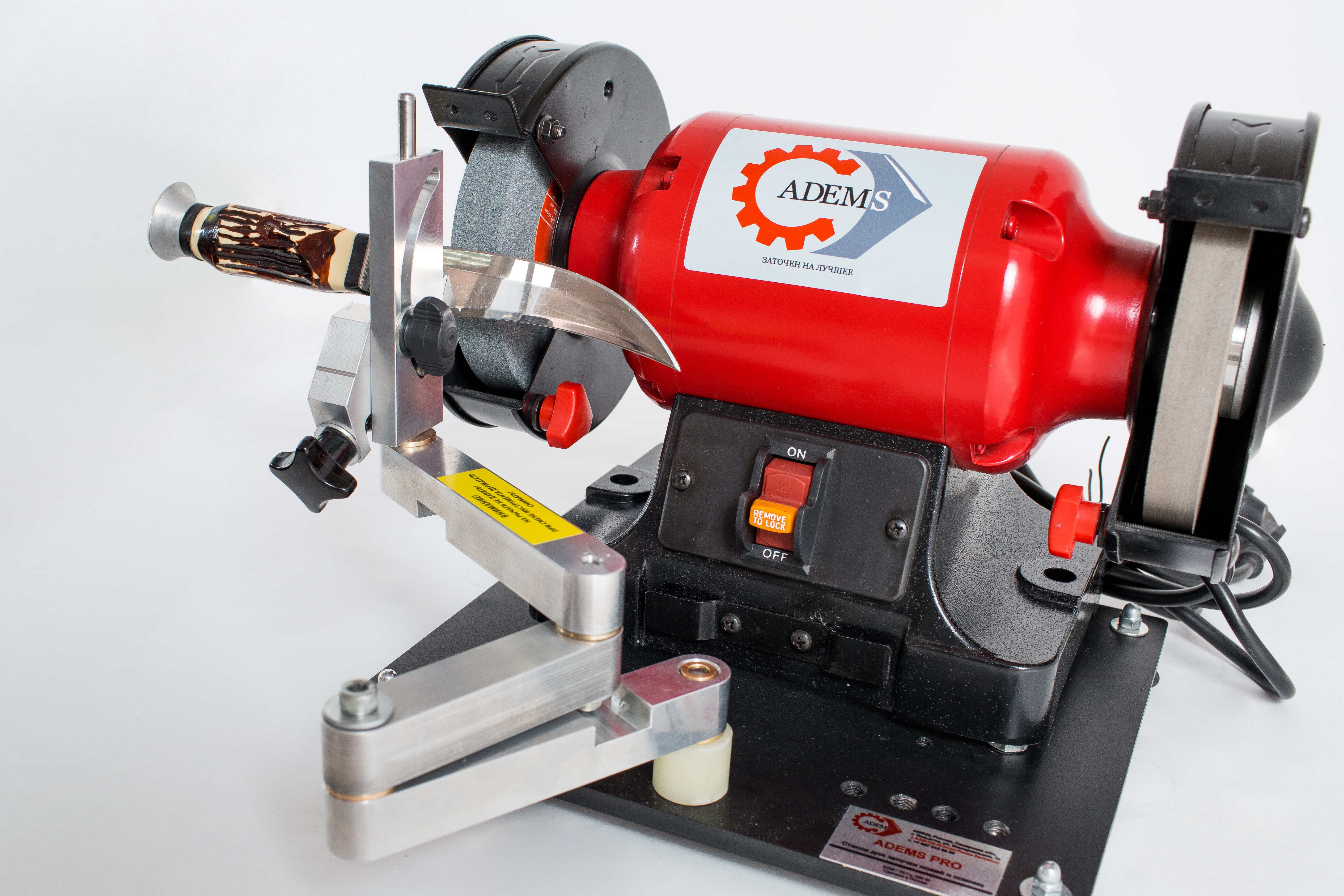 ADEMS Pro - профессиональный, надежный и вместе с тем - простой в обращении станок для заточки ножниц и ножей самого разного типа. ADEMS Pro легко справится с заточкой канцелярских, бытовых, портновских, садовых ножниц, а также кухонных, столовых, разделочных, боенских ножей, кроме керамических ножей.