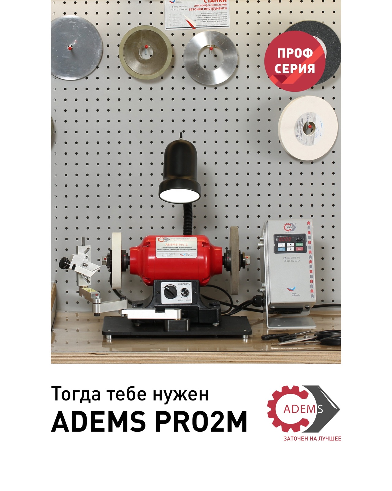 Тогда тебе нужен ADEMS Pro 2 M — мощный, компактный станок, созданный специально для заточки кусачек, ножниц, пушеров и твизеров.