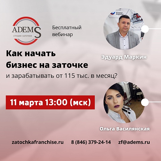 Открывайте успешный бизнес вместе с ведущим брендом производителя заточных станков ADEMS и Международной Академией Заточки ADEMS.