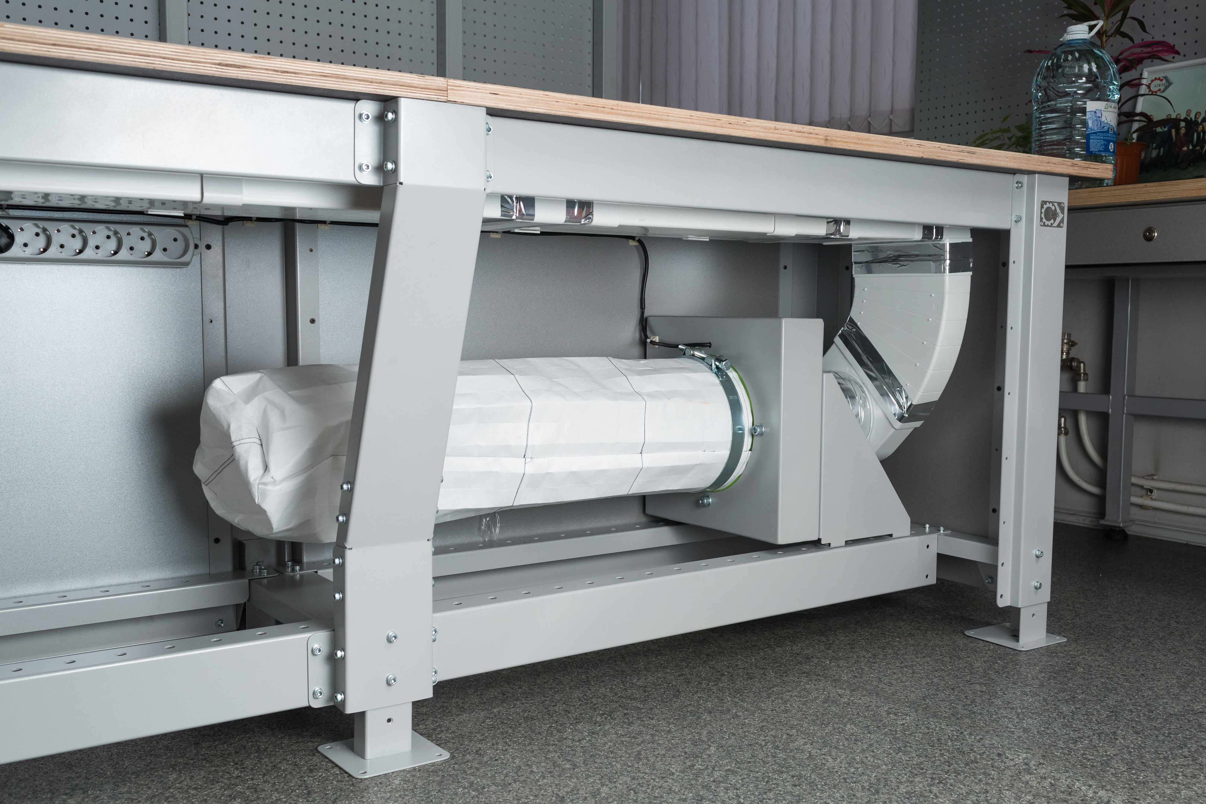 - Безопасность: Наши столы оснащены встроенной вытяжкой и защитным пластиковым кожухом, что обеспечивает защиту ваших легких и рабочего пространства от пыли и загрязнений