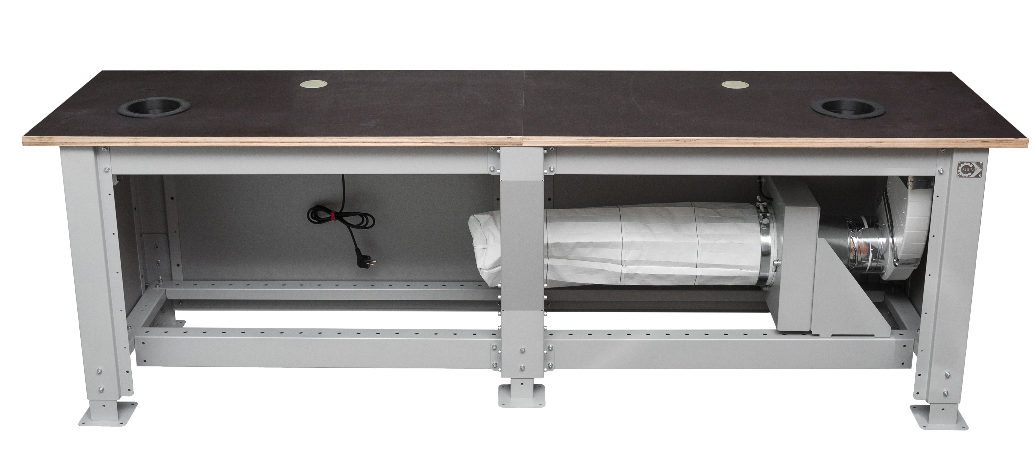 Расположение мест для монтажа вытяжки в столешнице будет зависеть от комбинации станков на конкретном рабочем месте